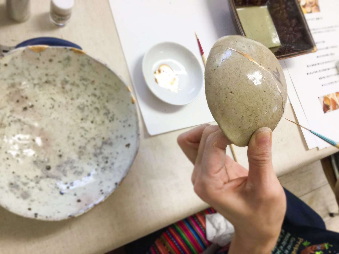 持ち物:破損した器3〜5個(花瓶、急須、ガラスは除く)、エプロン、薄手のゴム手袋、手拭きタオル、洗濯バサミ10個、持ち帰り用のしっかりしたボックス、など