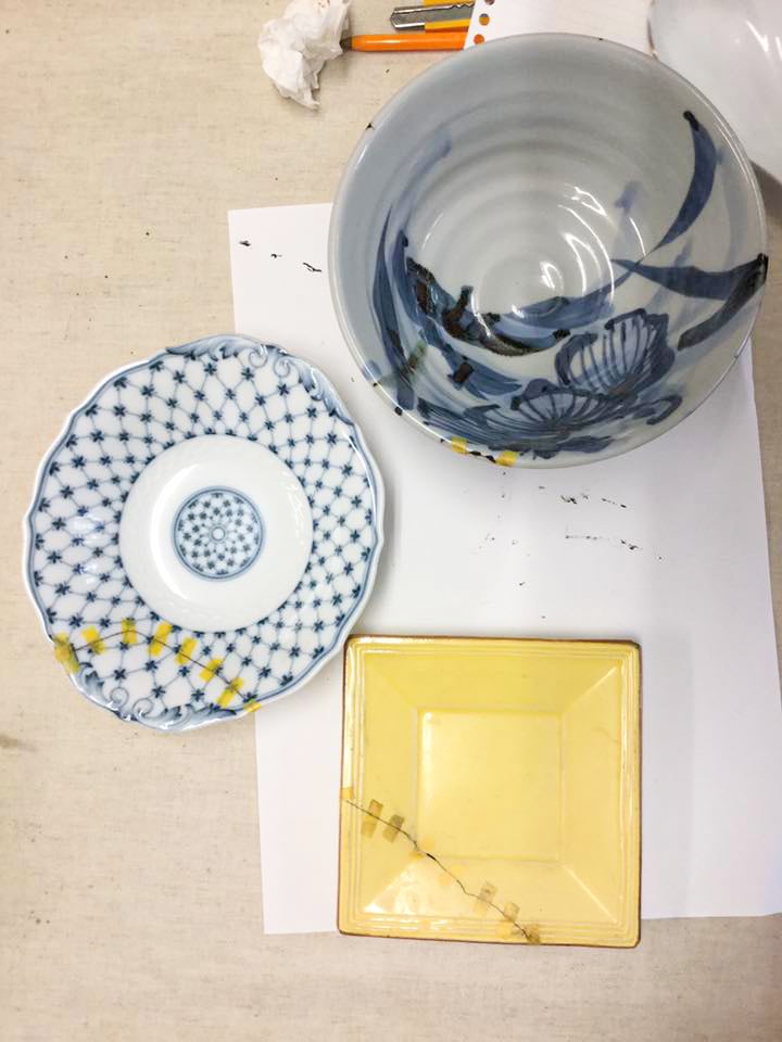 持ち物:破損した器3〜5個(花瓶、急須、ガラスは除く)、エプロン、薄手のゴム手袋、手拭きタオル、洗濯バサミ10個、持ち帰り用のしっかりしたボックス、など