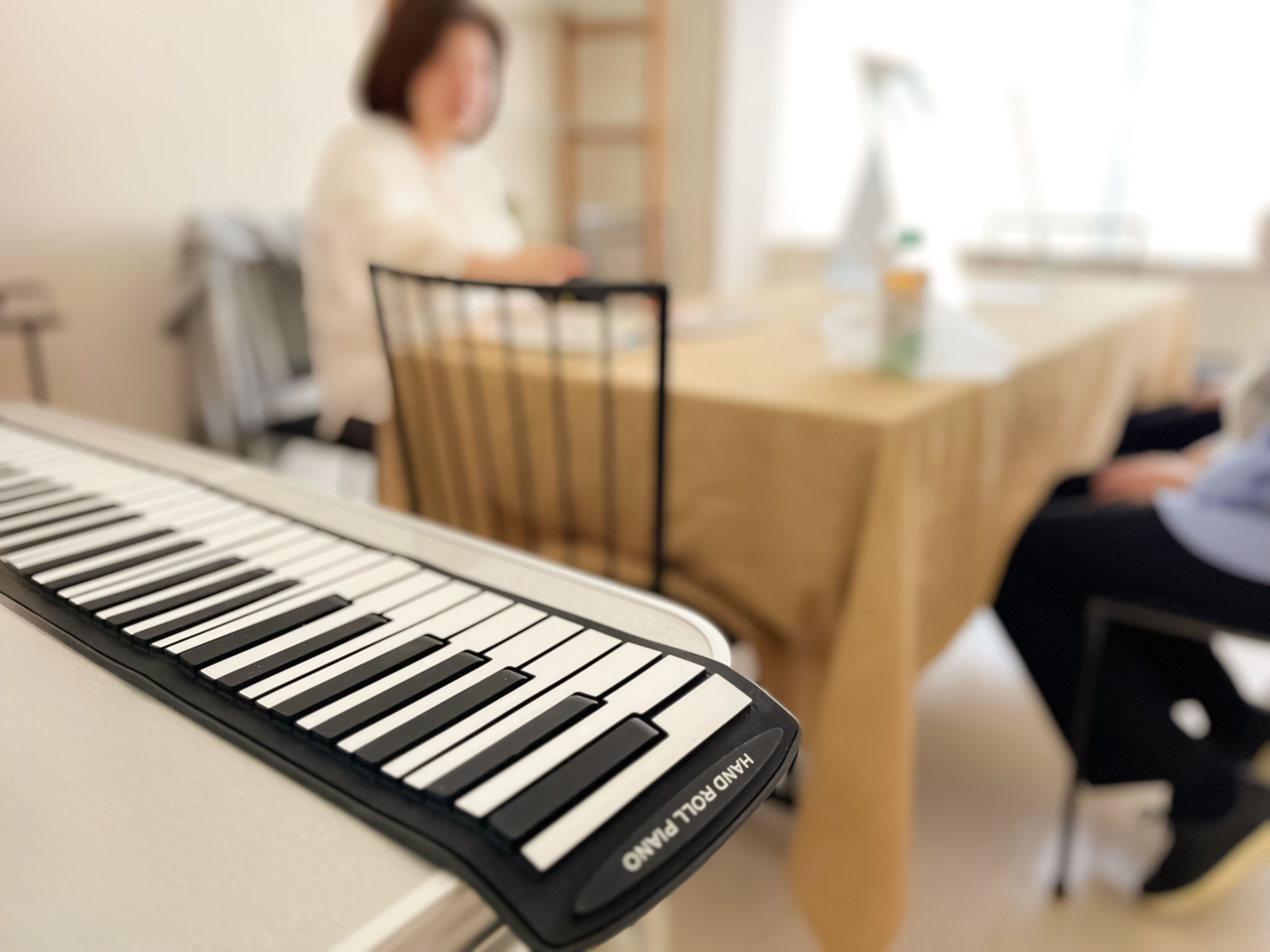 表情筋からほぐしたり、声を発する事で明るくなれるように教えます。