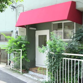 根津美術館の通りを赤坂方面へ。1つ目の信号の先、 赤いテントが目印です。